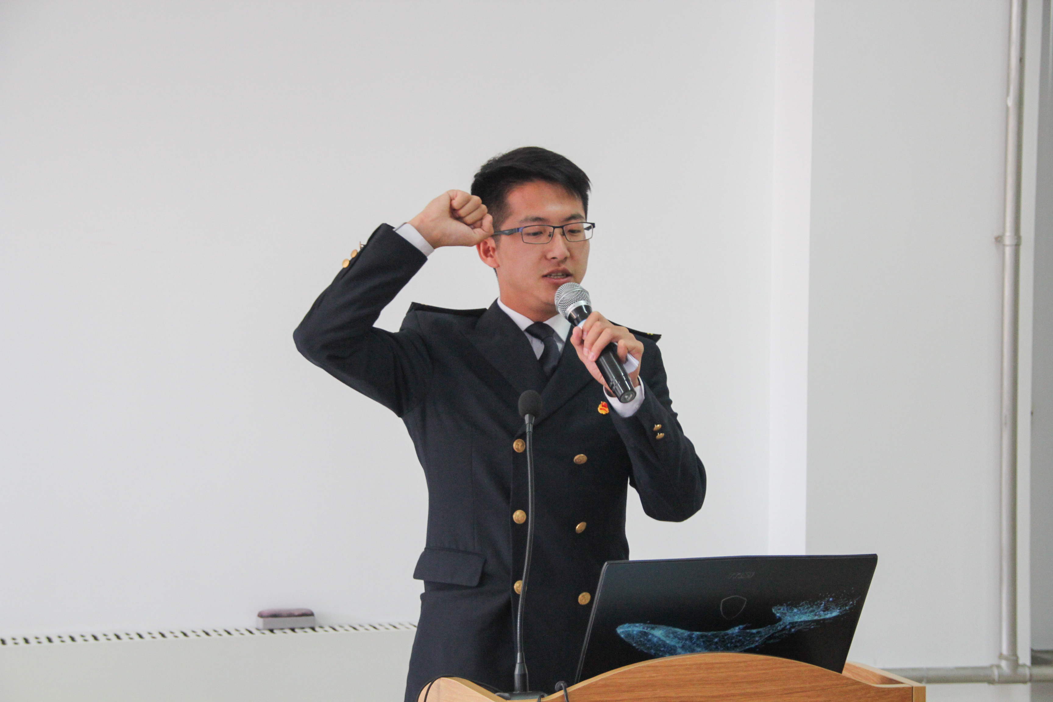 吴正杰上台带领所有同学宣誓,通过重温誓词夯实负责人的职责和使命。