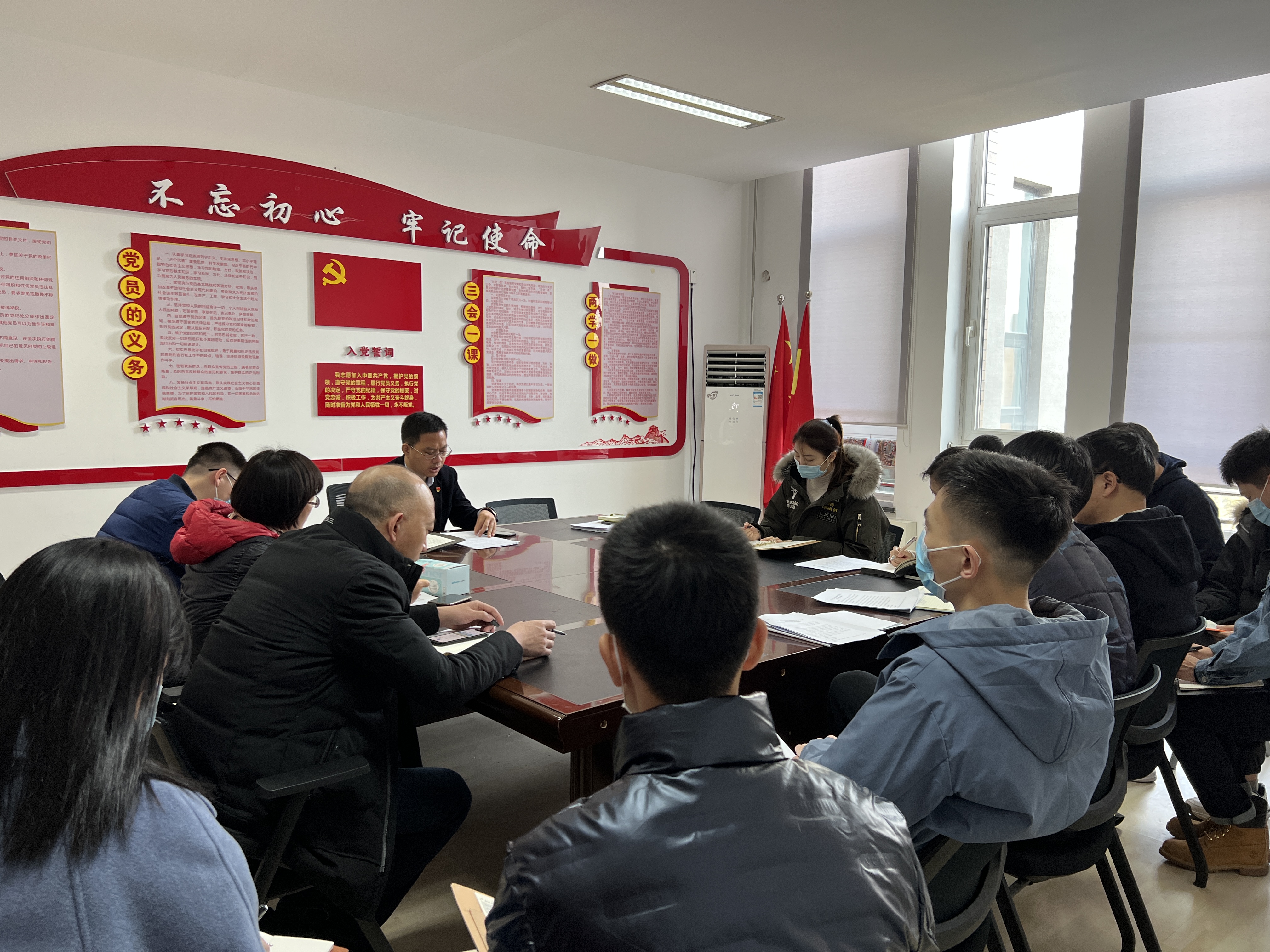 会上,全体参会人员集体学习2022全国两会政府工作报告。徐德江结合当前的国内外政治形势和党建工作新要求,对新学期党建工作进行了部署。一是不断强化理论武装,及时跟进学习习近平总书记重要讲话精神,巩固拓展党史学习教育成果;二是旗帜鲜明讲政治,强化支部政治功能,做好意识形态网格化管理、师德师风建设等工作;三是发挥党建领航作用,深入推进党建与人才培养、专业建设和师资队伍建设高质量融合发展;四是加强党支部标准化规范化建设,增进教师和学生党支部共建,突出价值引领;五是加强党员教育管理,做好青年教师的政治吸纳及党员的系统培训。