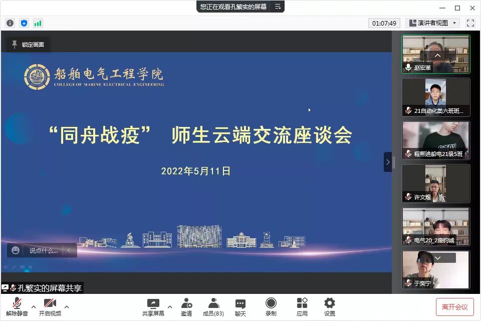赵宏革最后指出,面对疫情这场大考,每一位同学都参与其中,每一位同学是答卷人。他鼓励并希望全体同学,一是要提高思想认识,从国家社会层面理解打赢这场疫情防控阻击战的重要意义;二是要理解遵守校园疫情防控工作规定,在特殊时期展现出船电青年的责任担当;三是要积极投身校园学习生活,在特殊时期勇于克服困难,迎接挑战,收获有意义有价值的校园生活。
