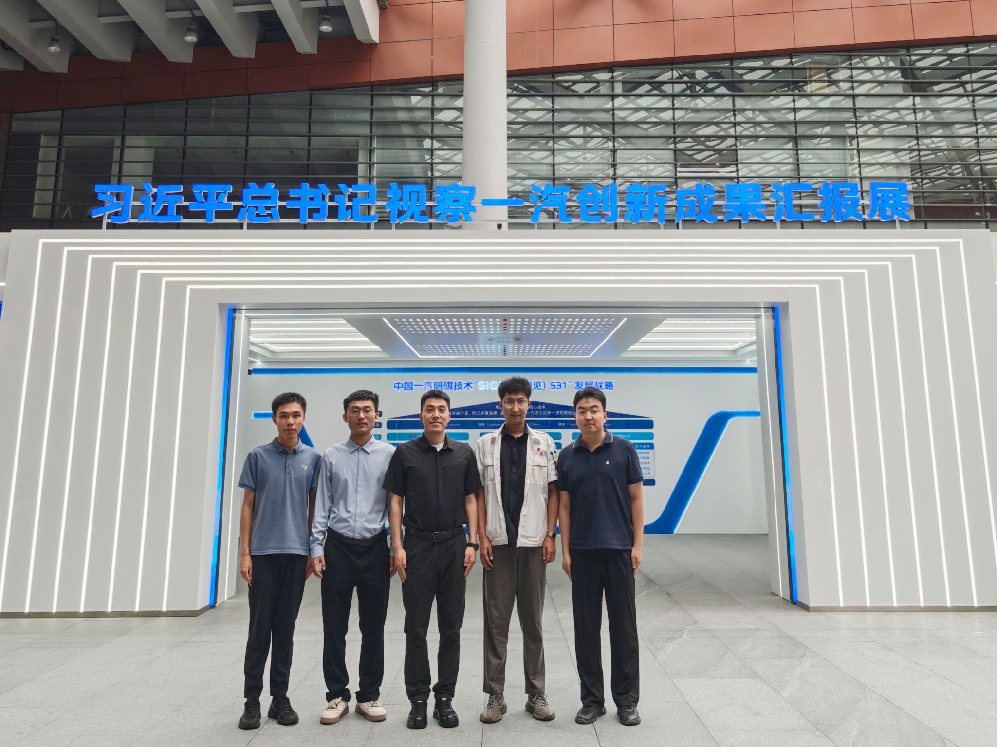 首先,王超一行三人参观了中国一汽“技术与整车产品展”和“先锋文化展”,在观展过程中在观展过程中了解一汽集团产品、技术发展历程,并与企业工作人员交流、探讨我院所学专业在一汽集团技术革新过程中的应用场景。
