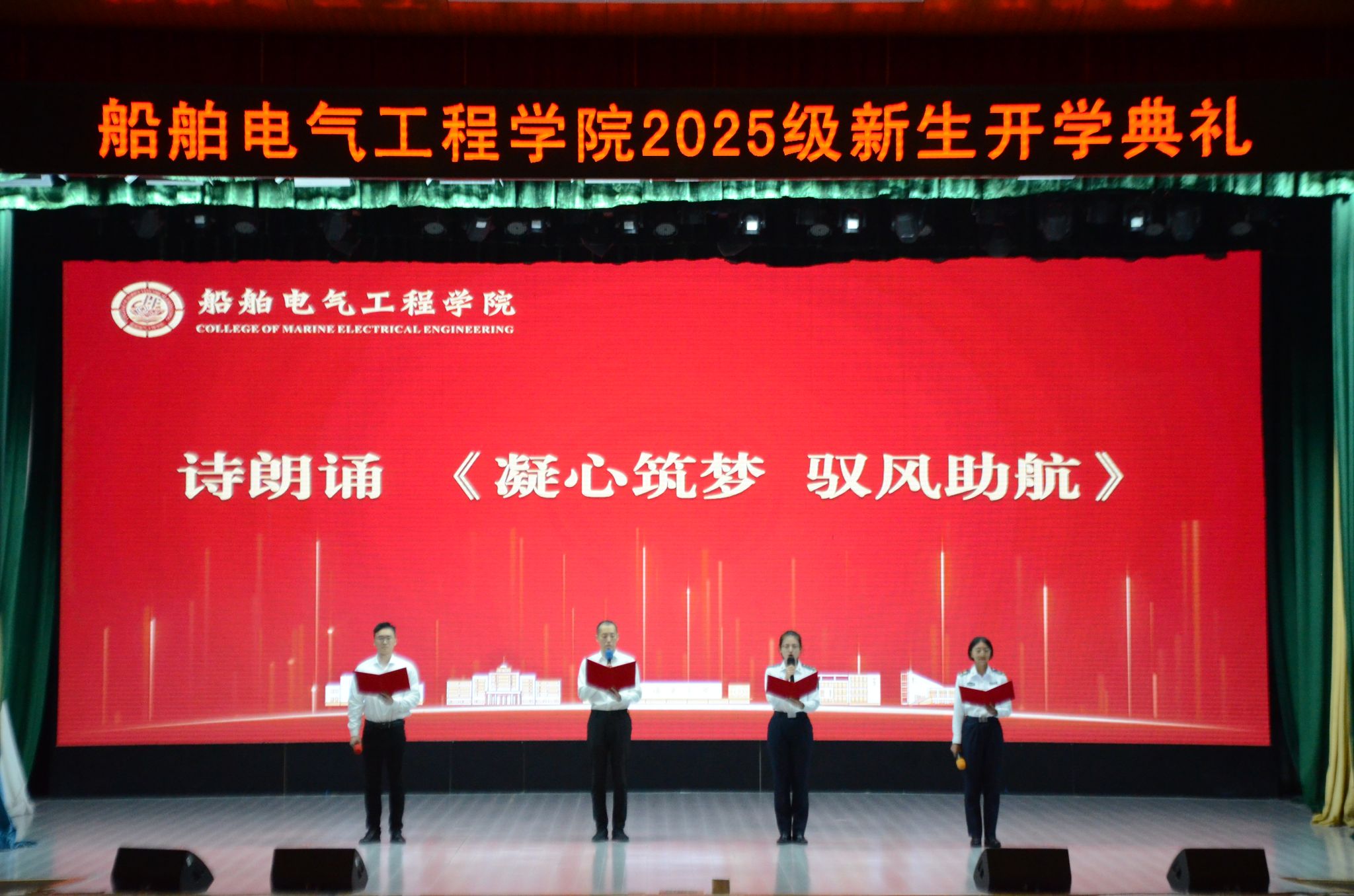 一段由师生代表共同演绎的原创诗朗诵《凝心筑梦,驭风助航》,以饱含深情的对白与铿锵有力的誓言,道出了老师的殷切期盼与新生的坚定决心,凝聚起为“船电荣光”而共同奋斗的磅礴力量。
