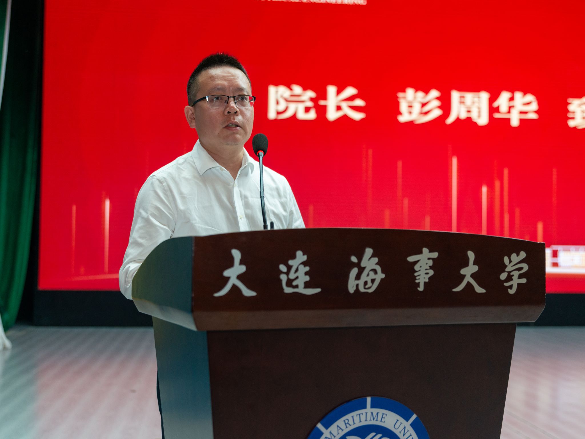 院长彭周华致辞,代表学院全体师生欢迎2025级新同学。彭周华以“同舟悟道,慧赢深蓝”的院训为主题,对同学们提出三点期望:一是同舟共济,在协同中凝聚力量,在课堂中主动分享见解、在实验里高效配合、在项目中携手攻坚,让“同舟共济”成为探索知识海洋的实践方式;二是悟道致远,在探索中突破认知,不断拓展认知边界,培养敏锐的观察能力和系统解决问题的能力;三是慧赢深蓝,在奋进中开创未来,担当时代使命,主动投身科研创新,以学识与担当,成为民族复兴伟业的中流砥柱,用青春为海洋强国建设注入船电智慧。最后,他希望同学们牢记“同舟悟道,慧赢深蓝”的院训,在团结协作中探索科学真理,以智慧赢得深蓝,为海洋强国、交通强国建设贡献自己的力量。