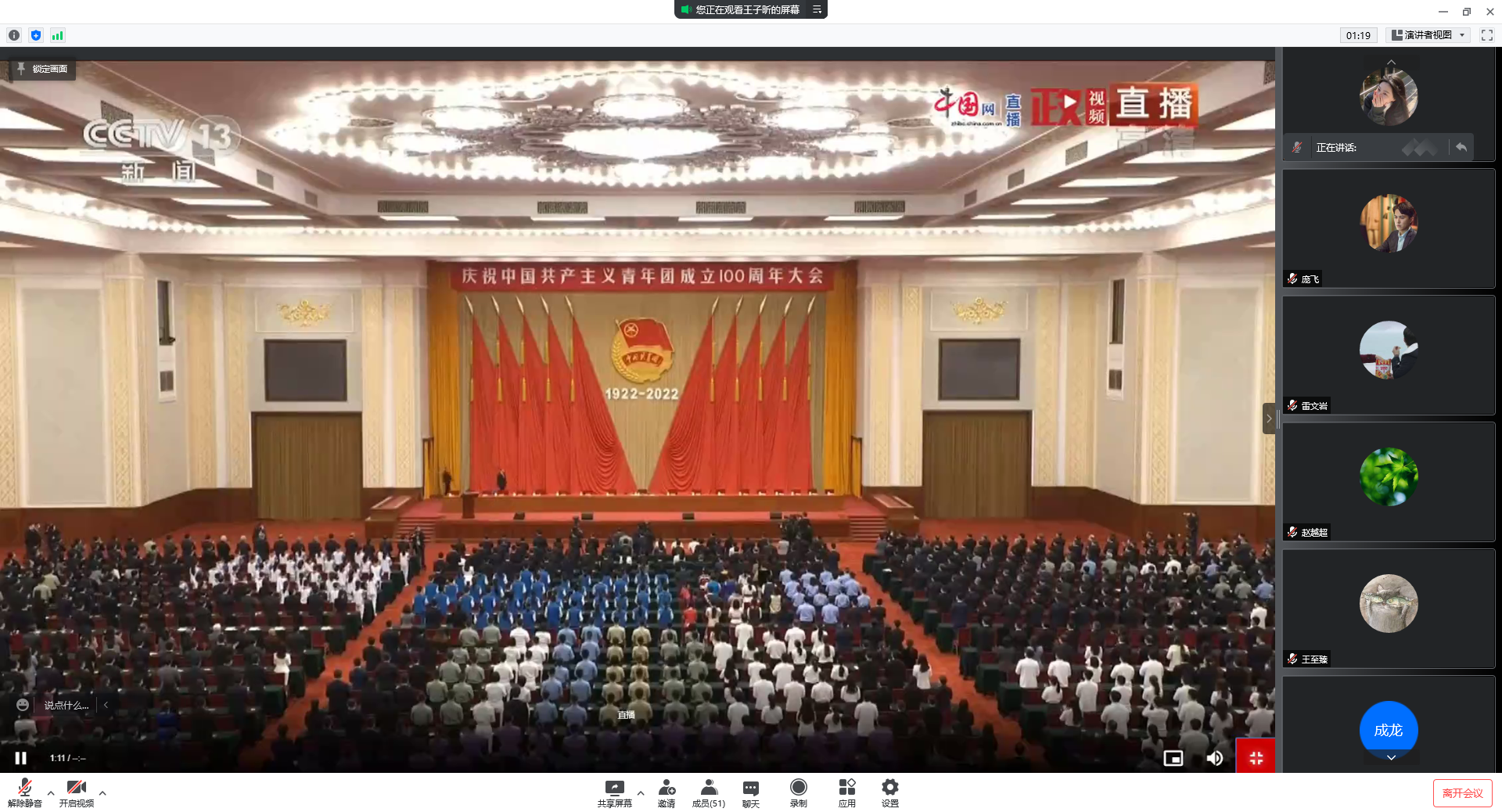 组织全体青年团员共同观看大会直播。