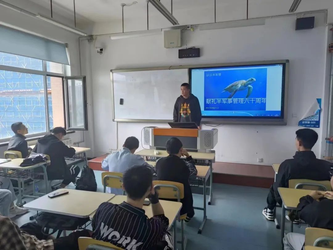 在认识半军管环节,学院主要通过思想教育,让学生了解半军事管理的发展历史,客观总结半军事管理对自己的帮助等,引导同学从思想上认同半军事管理。