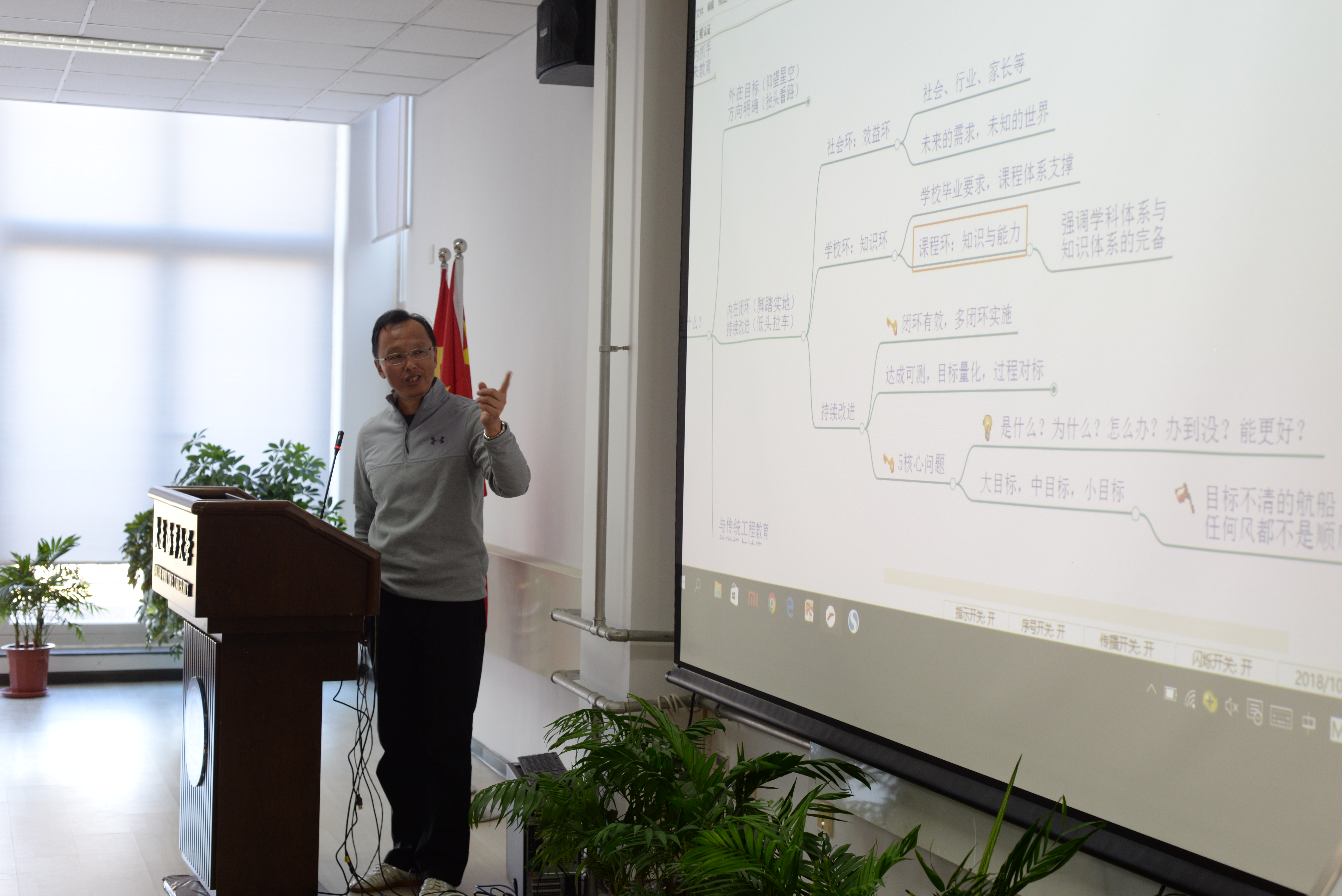 汪思源教授首先作了题为 “以专业认证为抓手 推进面向未来教育”的报告。汪思源对国内外大学教育教学改革有较深的理解和研究,他站在比较高的角度,审视了我国及我校本科教育教学的一些问题,分析了当前教育教学发展的趋势,并利用雨课堂教学方式和生动形象的语言重点分享对工程教育认证的理解,取得良好效果。